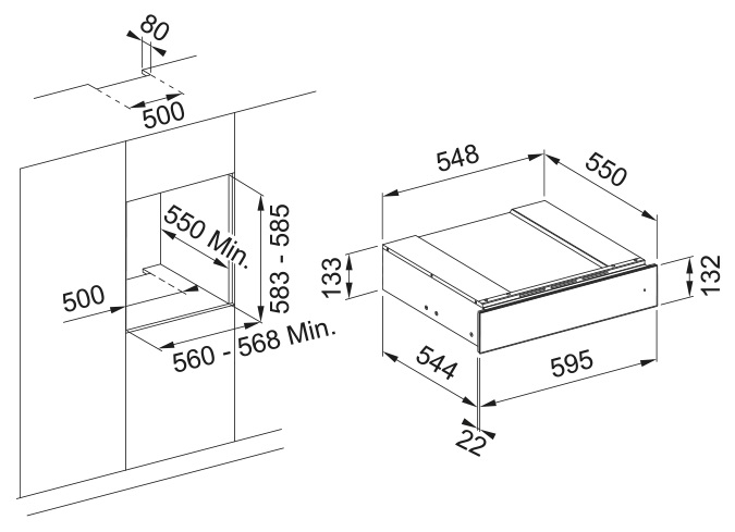 - Размеры прибора (ШхВхГ): 594х130х562 мм.