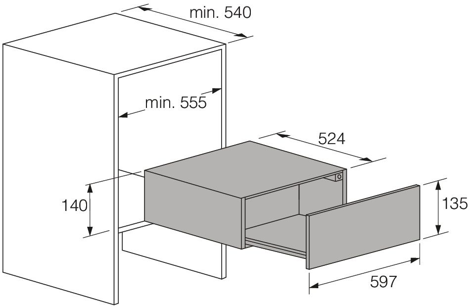 - Размеры ниши для встраивания (ШхВхГ): 560х140х550 мм.