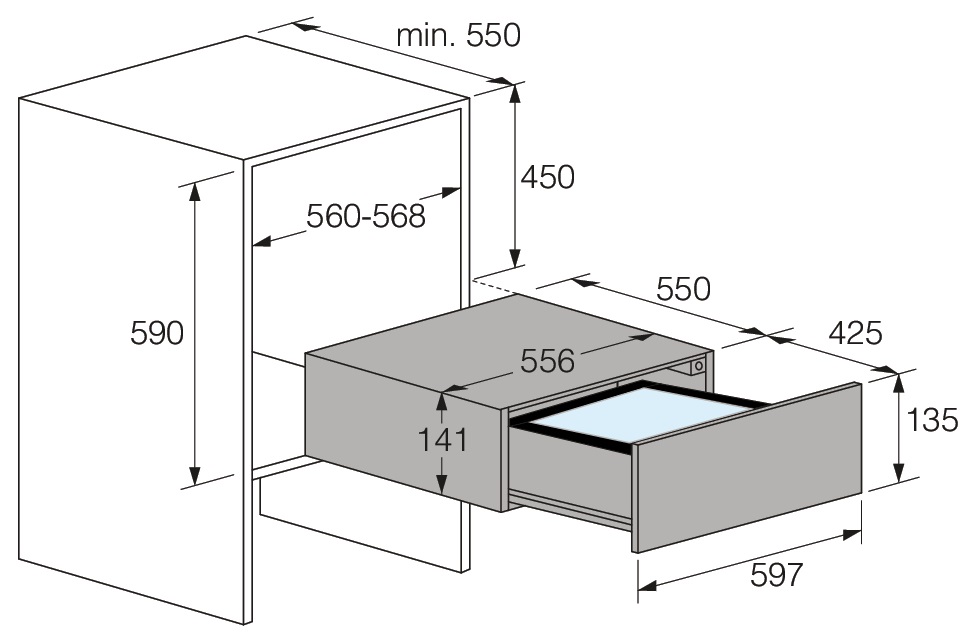 - Минимальная ширина ниши: 560 мм.