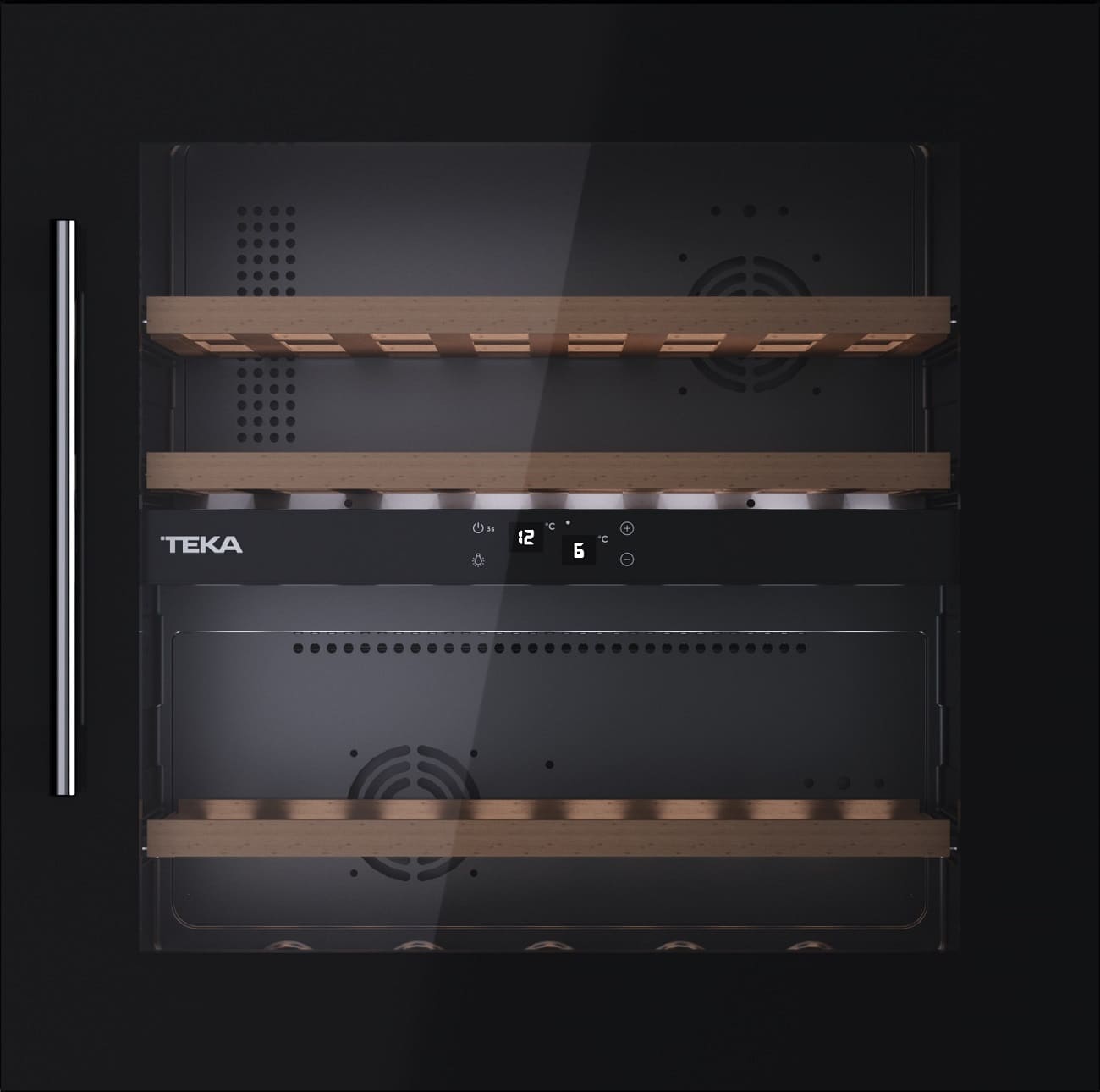 - Внутренний двойной дисплей на полке с отображением температуры в отсеках.