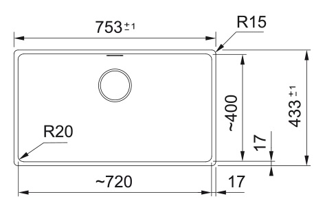 - Размер мойки: 753х433 мм.