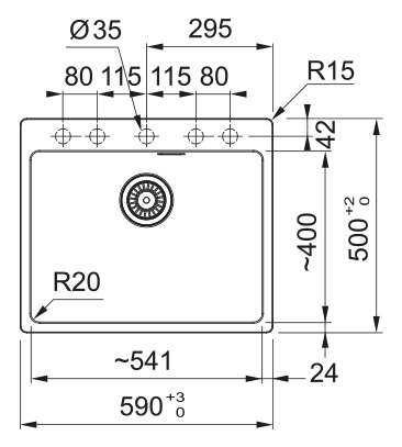 - Отверстие под смеситель: сформированные с обратной стороны 5х35 мм.