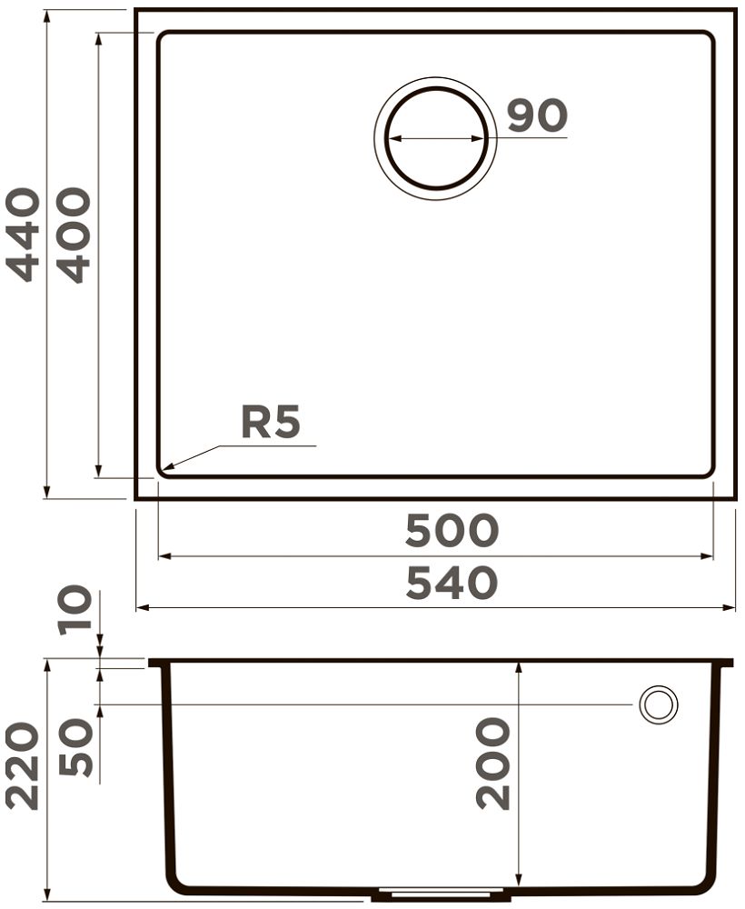 - Размеры мойки: 540х440х200 мм.