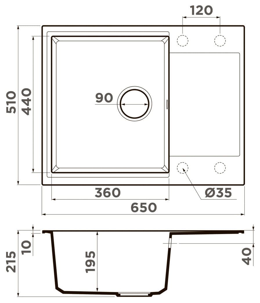 Мойка гранитная Omoikiri Daisen 65 BL Artgranit чёрный