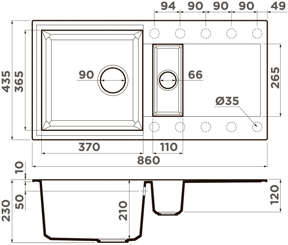 • Размеры мойки: 860х465х210 мм.