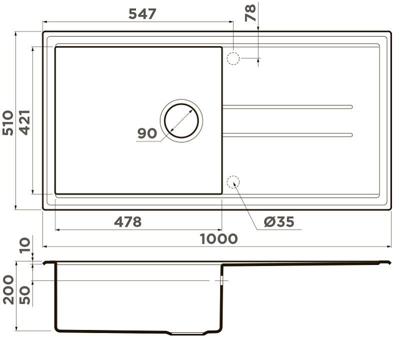 - Размеры мойки: 1000х510х200 мм.
