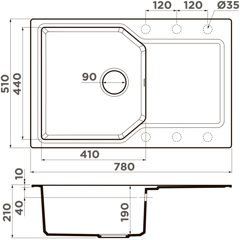 - Размеры мойки: 780х510х190 мм.