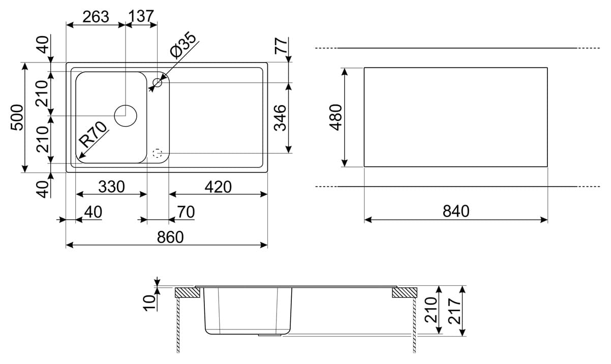 • Монтаж: врезная сверху.