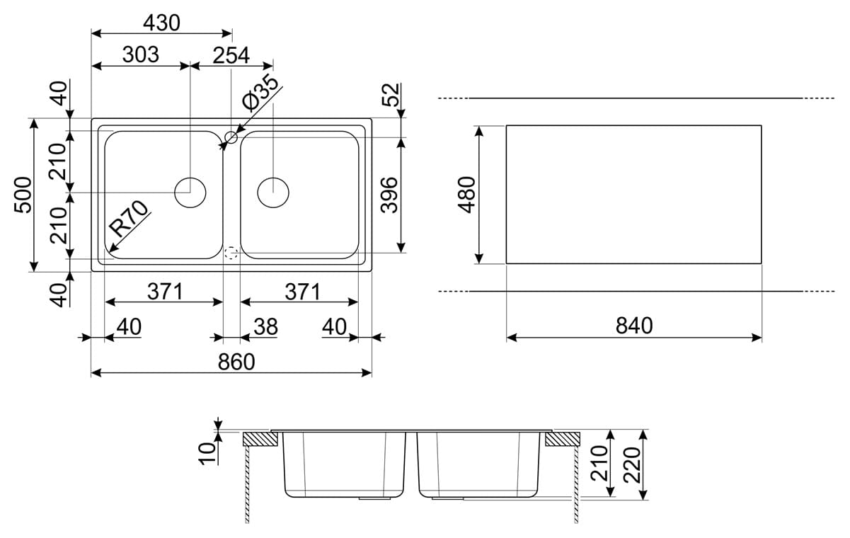 - Размеры мойки: 860х500 мм.