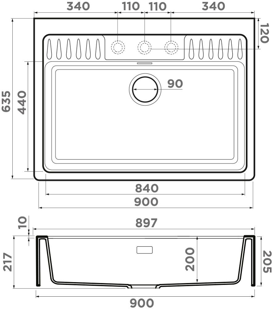- Размеры мойки: 900х635х217 мм.