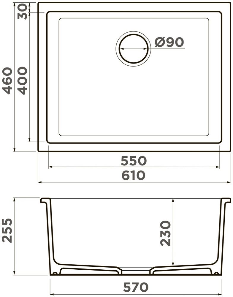 - Размеры мойки: 610х460х255 мм.