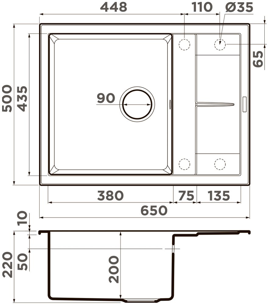 - Размеры мойки: 650х500х200 мм.