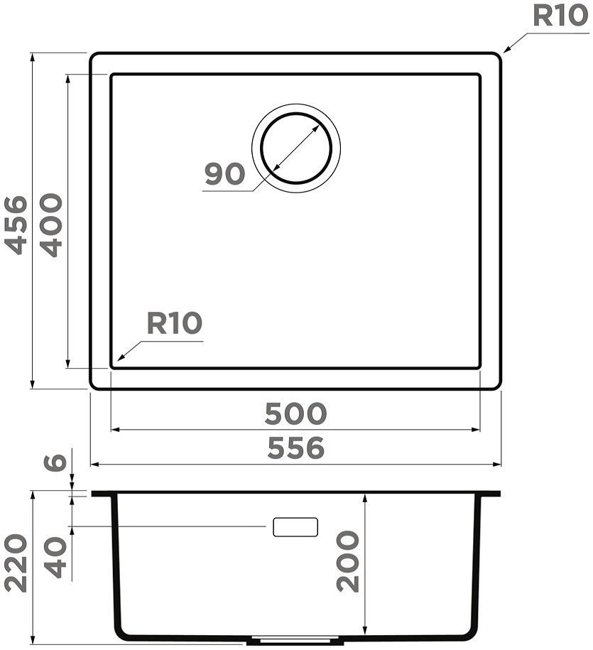 - Вырез для подстольного монтажа: 500x400 мм.