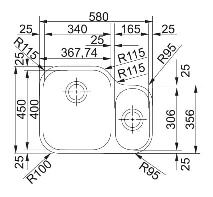 - Размер малой чаши: 165х306 мм, глубина 140 мм.