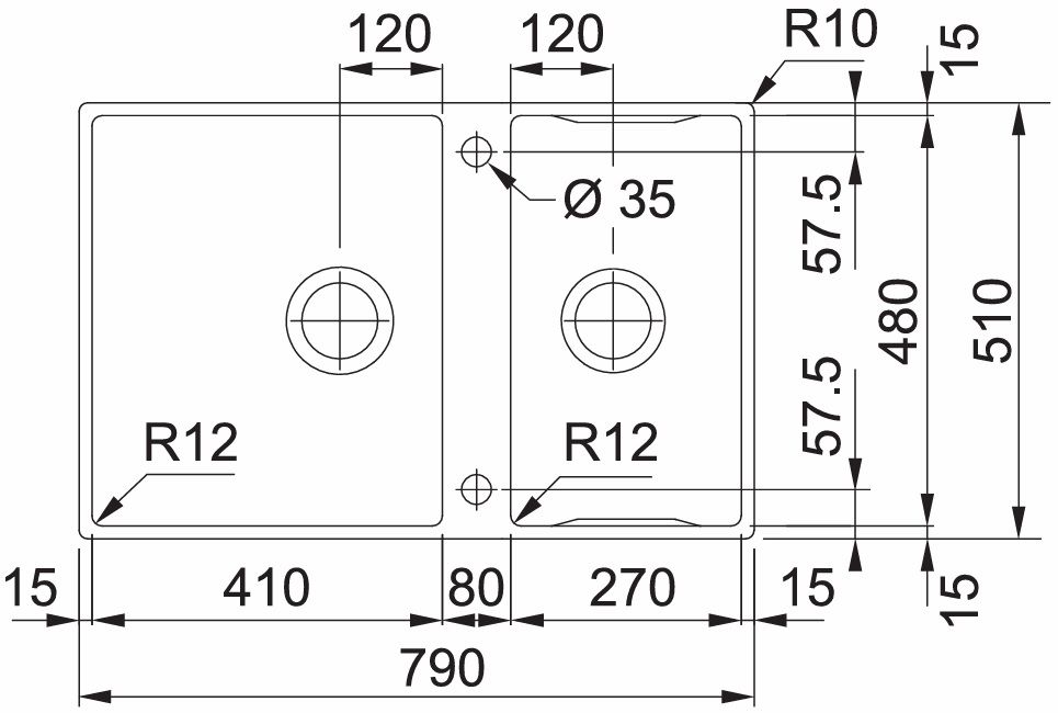 - Размер мойки: 790х510 мм.