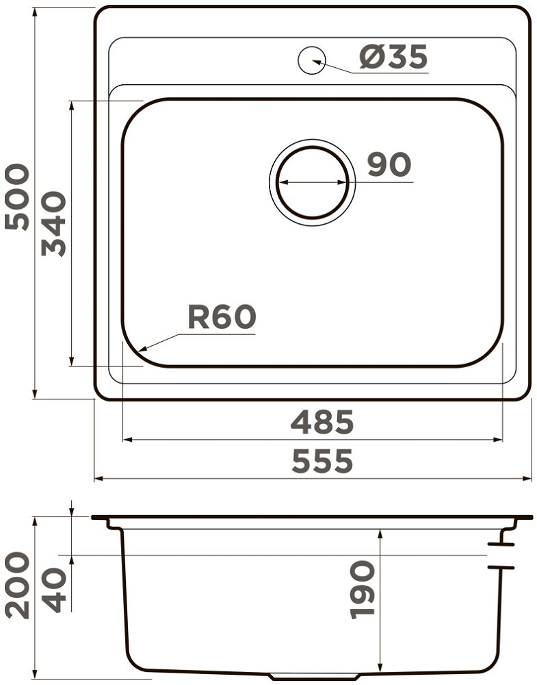 - Размеры мойки: 560х480х190 мм.