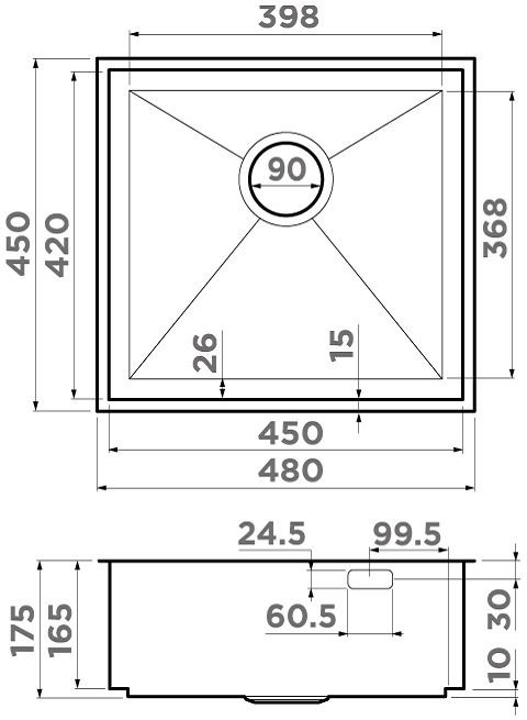 - Размеры мойки: 480х450х175 мм.