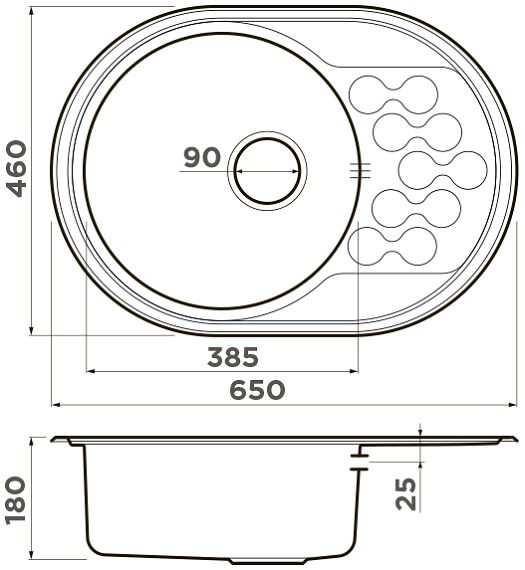 - Размеры мойки: 650х460х180 мм.