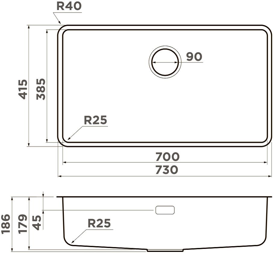- Размеры мойки: 730х415х179 мм.