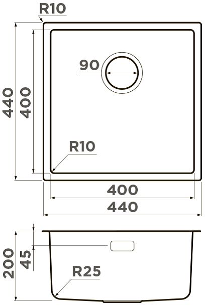 - Размеры мойки: 440х440х200 мм.