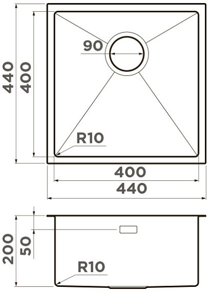 • Размеры мойки: 440х440х200 мм.