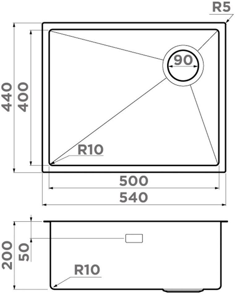 - Размеры мойки: 540х440х200 мм.