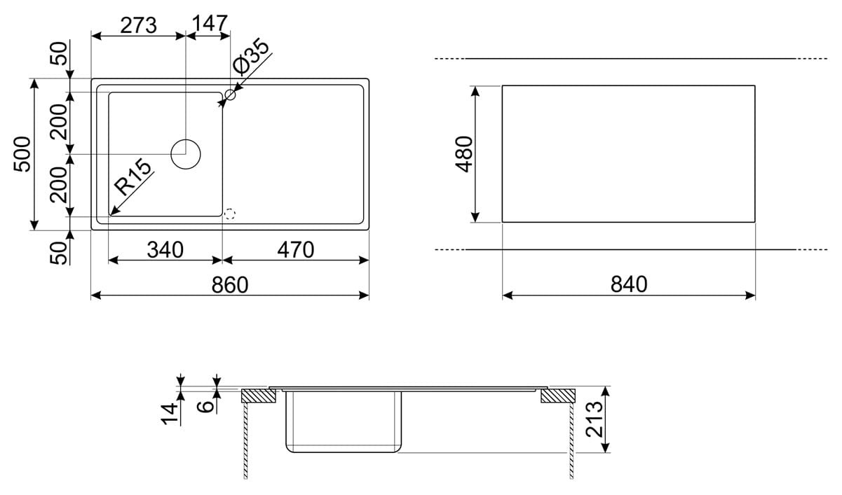 - Монтаж: врезная сверху, ультранизкий профиль.