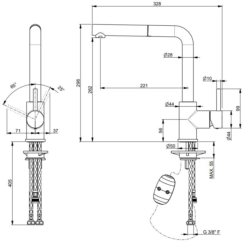 - Соединительные шланги с внутренней резьбой 3/8 дюйма.