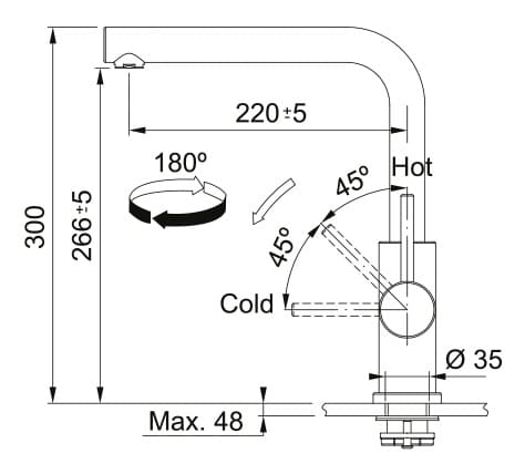 - Угол поворота излива 180°.