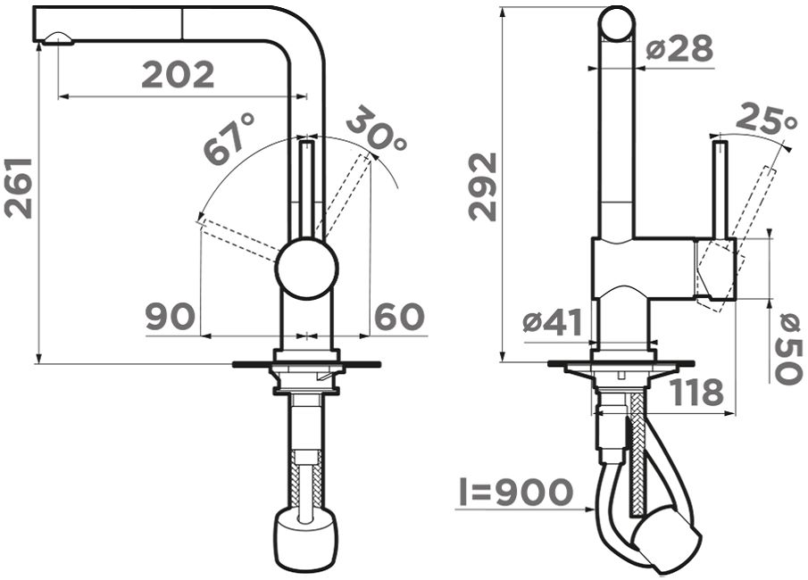 - Подводка: гибкая, в оплетке из нержавеющей стали.