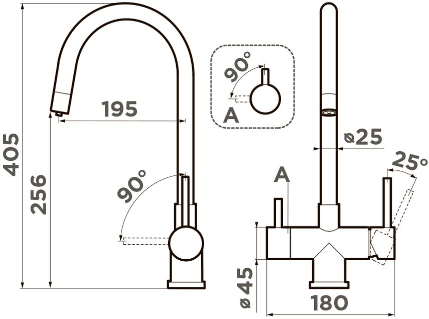 - Подводка: гибкая, в оплетке из нержавеющей стали.