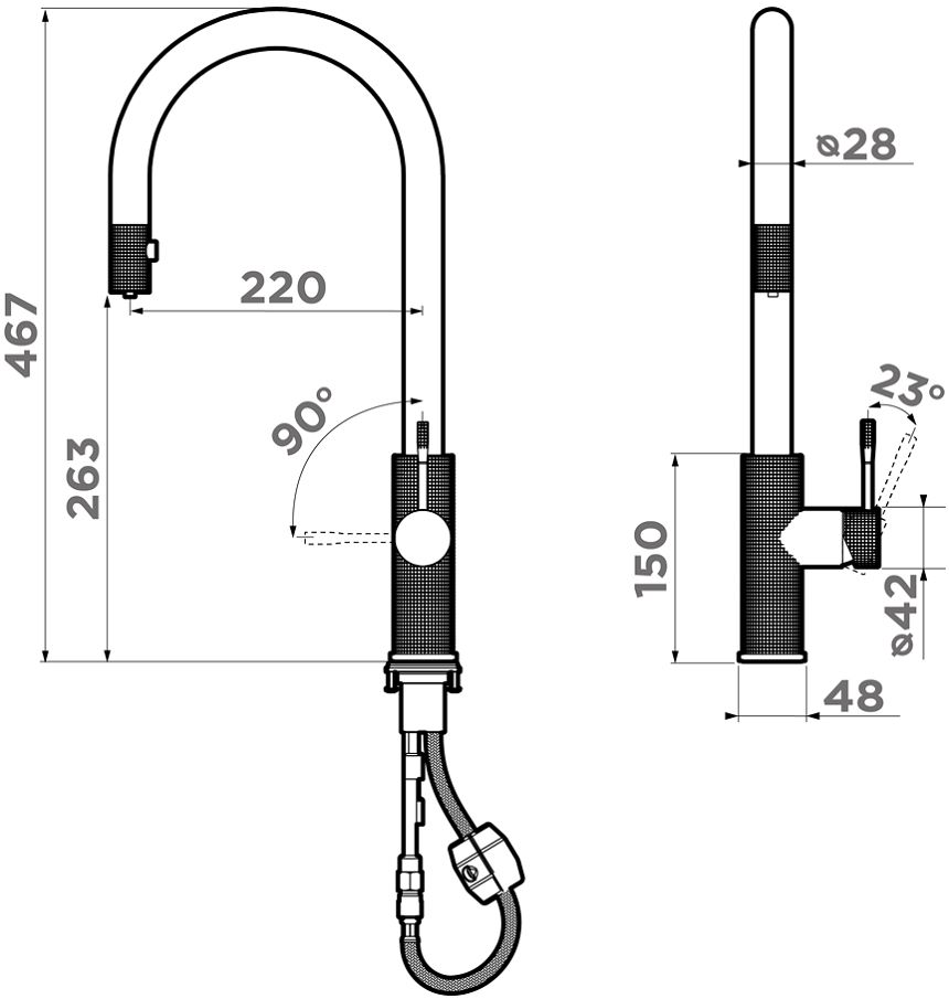 - Подводка: гибкая, в оплетке из нержавеющей стали.