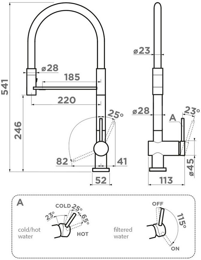 Смеситель Omoikiri Kanto 2 Plus-SB GB графит с подключением фильтра