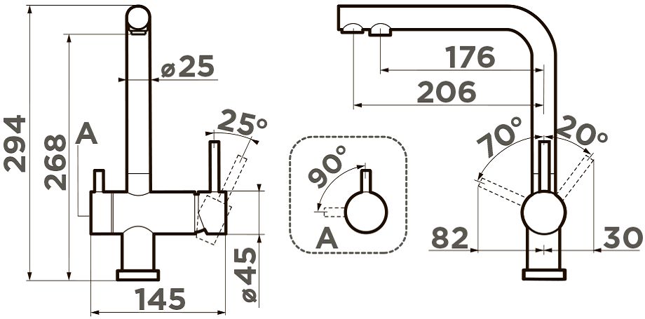 • Подводка: гибкая, в оплетке из нержавеющей стали.