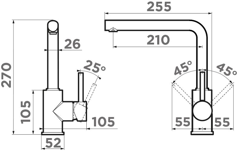 • Подводка: гибкая, в оплетке из нержавеющей стали.