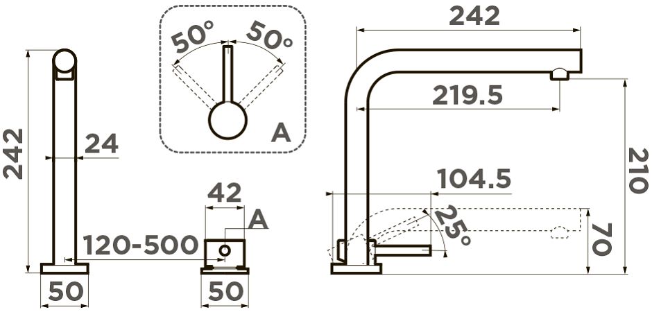 - Подводка: гибкая, в оплетке из нержавеющей стали.