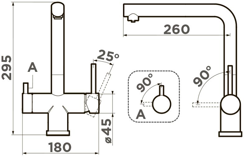 - Подводка: гибкая, в оплетке из нержавеющей стали.