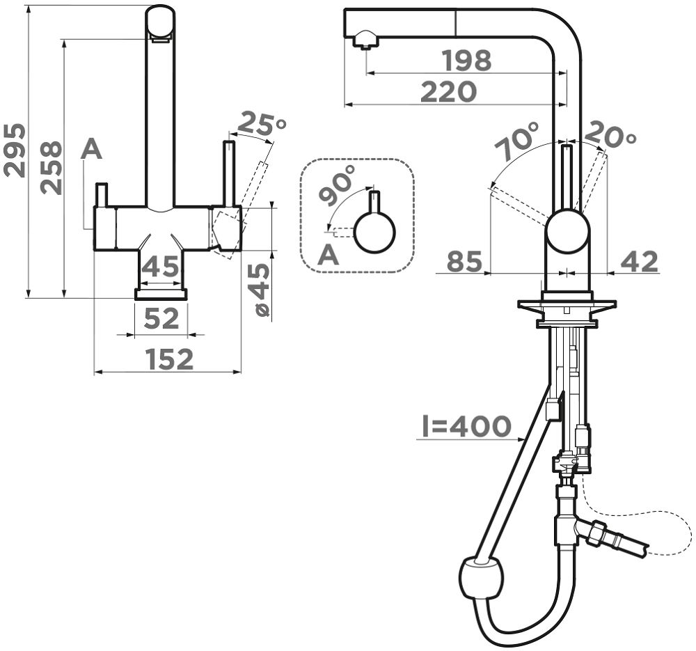 - Подводка: гибкая, в оплетке из нержавеющей стали.