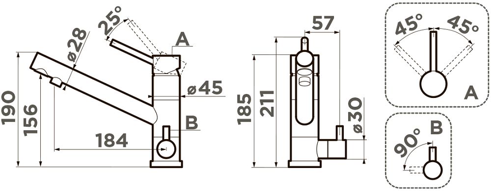 • Подводка: гибкая, в оплетке из нержавеющей стали.