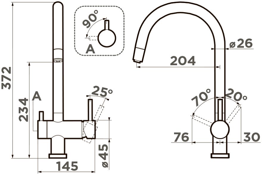 • Подводка: гибкая, в оплетке из нержавеющей стали.