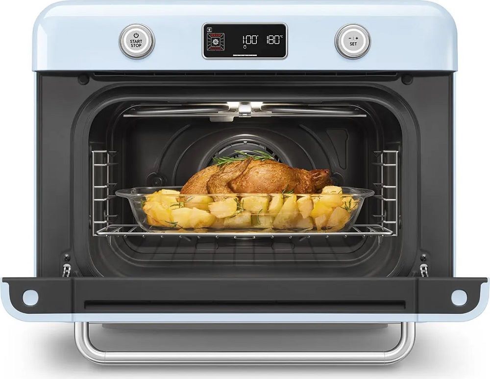 Функции: "Гриль", "Конвекция", "Нижний нагрев с конвекцией", "Air-fry", "Статический нагрев", "Разморозка", "Гриль с конвекцией и паром", "Пар".