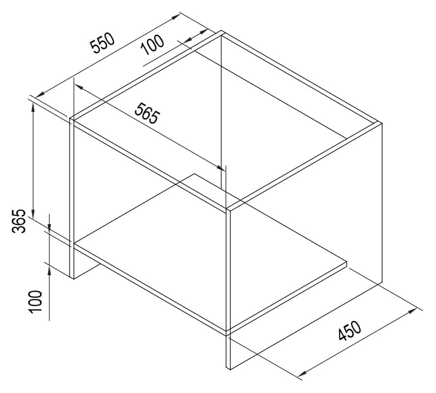 - Размеры для встраивания (ШхВхГ): 565х365х550 мм.
