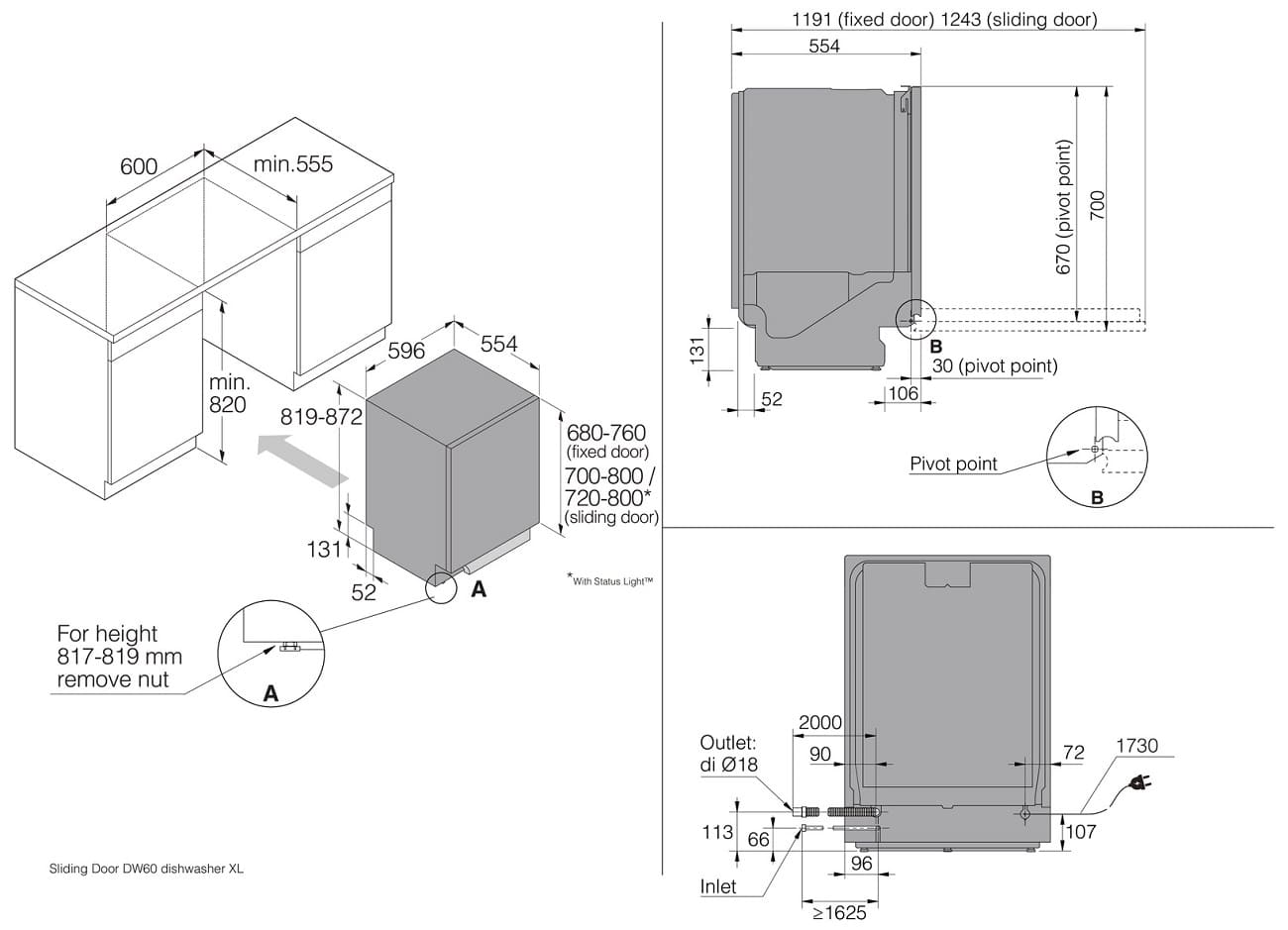 - Размеры (ШхВхГ): 596х819х554 мм.