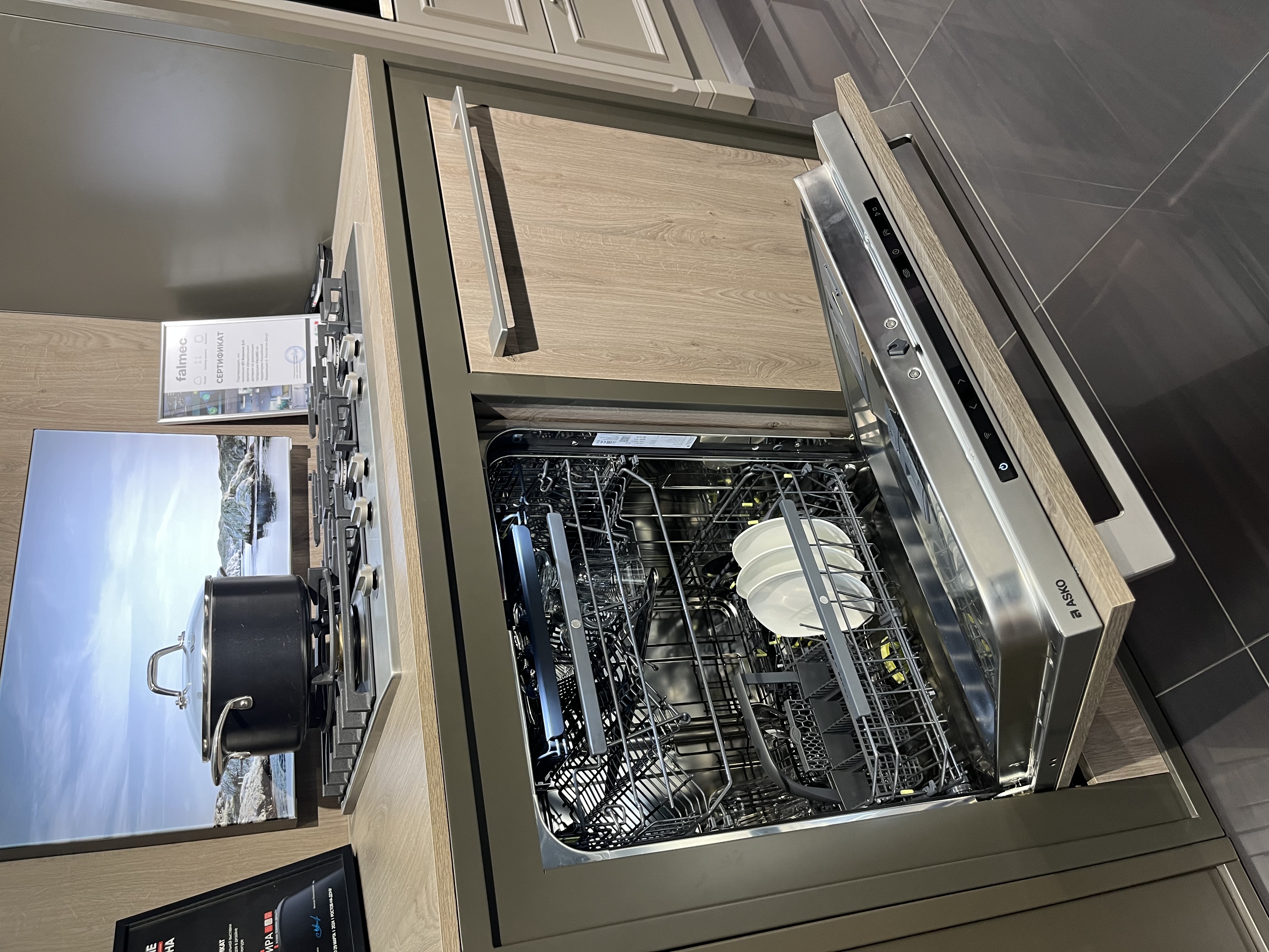 - Полностью встраиваемая посудомоечная машина.