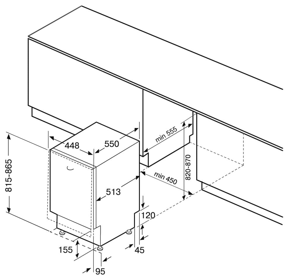 - Размеры ниши для встраивания (ШхВхГ): 450х820-870х555 мм.