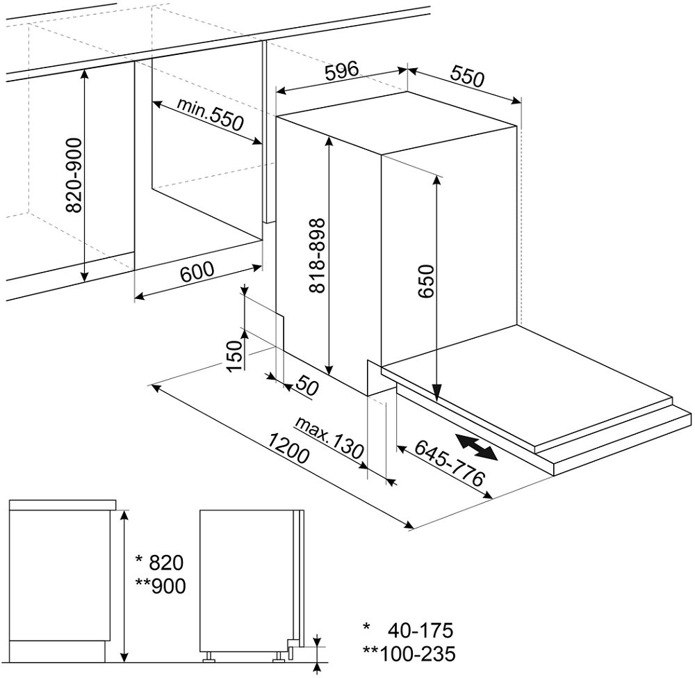 - Регулируемые по высоте ножки: 8 см, 820-900 мм.