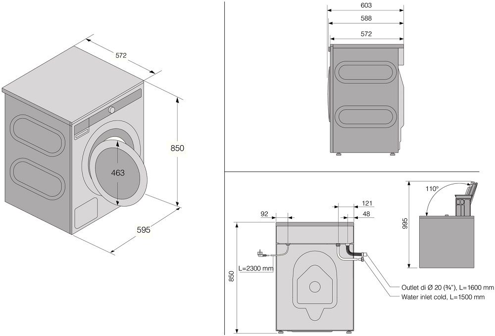 - Диаметр загрузочного проема: 310 м.