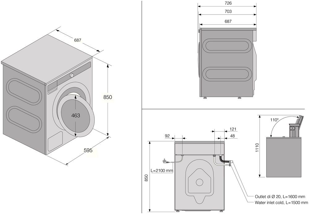 - Диаметр загрузочного проема: 310 мм.