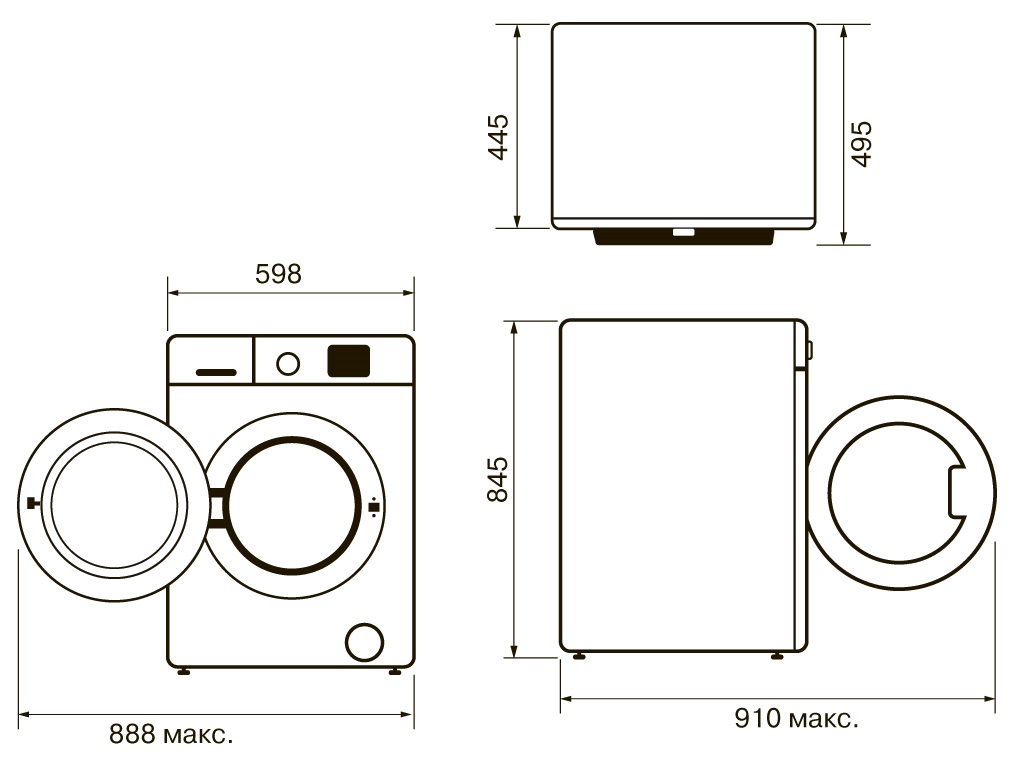 - Размеры прибора (ШхВхГ): 598х845х445 мм.