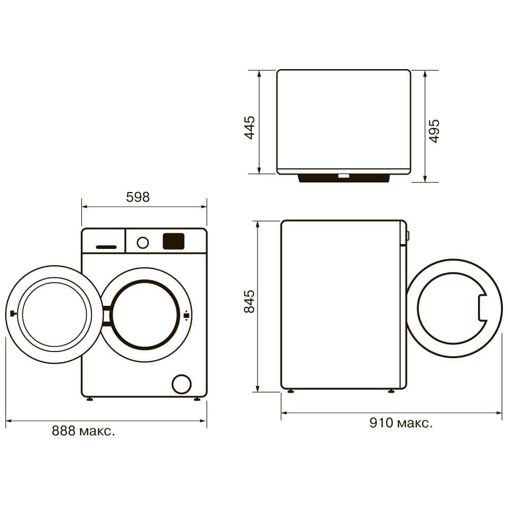 - Размеры прибора (ШхВхГ): 598х845х445 мм.